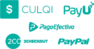 Estamos pre-integrados con las principales pasarelas de pago 1 en Perú, que te permiten aceptar pagos con tarjetas. O si prefieres, puedes solicitar pagos contra entrega, depósitos o transferencias.